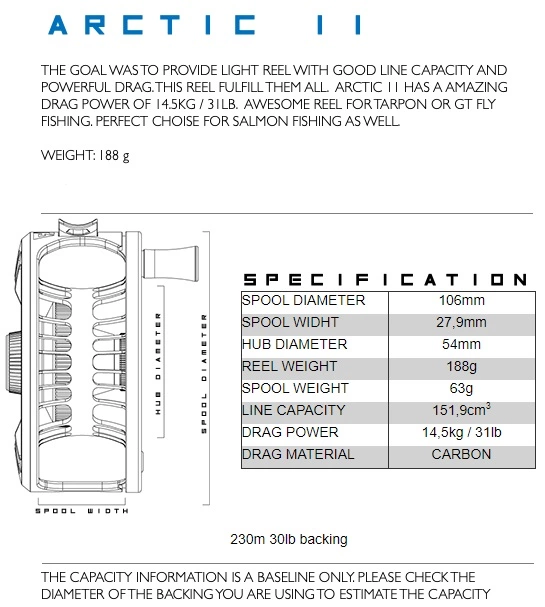 De reels zijn leverbaar vanaf lijnklasse #3 t/m 11, waarbij op alle vliegenreels tot twee of drie lijnklassen zwaardere vliegenlijnen ook prima passen. Dit vanwege de enorme backing capaciteit.Â