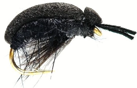 Een allround patroon van een donkere kever voor de momenten dat vissen donkere terrestrials van het wateroppervlak azen. Dit foam patroon is onzinkbaar.