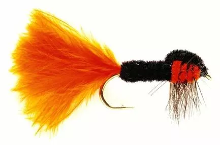 Een variatie op de standaard montana nu met een oranje marabou-staart om meer actie te geven, ongeacht de stripsnelheid of de gebruikte lijn.