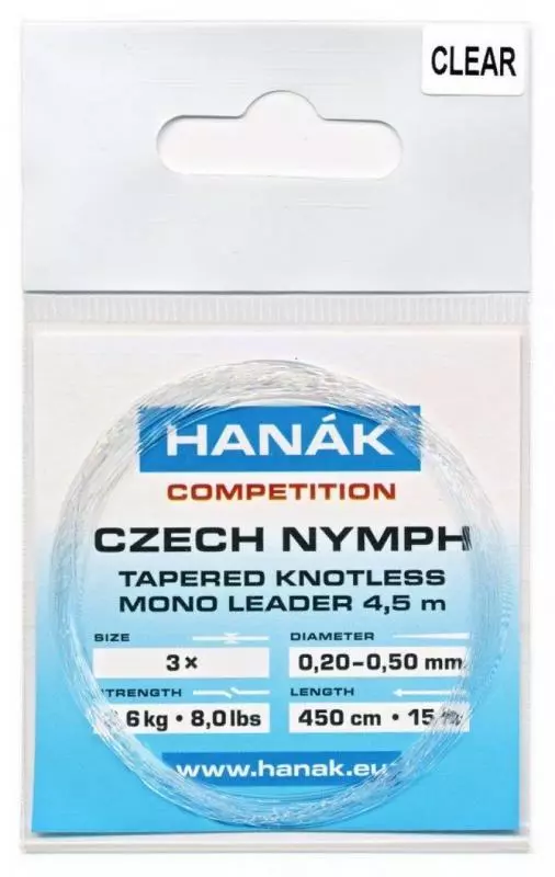 De Hanak Czech Nymph Leader is een extra zachte en knooploze nimfleader met een minimum aan geheugen, voor een soepele en accurate presentatie van de kunstvlieg.