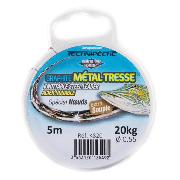 Het Knottable Steel Leader Wire is een van de zeer weinige staaldraad soorten die ECHT gemakkelijk te knopen zijn. Het materiaal bestaat uit een kern van GSP (oftewel dyneema), omsloten door een mantel van gevlochten platte RVS draad. Hierdoor is het Knottable Steel Leader Wire extreem soepel, erg licht en sterker dan de meeste andere staaldraadsoorten. Het is gemakkelijk te knopen met alle gangbare knopen die we in de sportvisserij gebruiken.