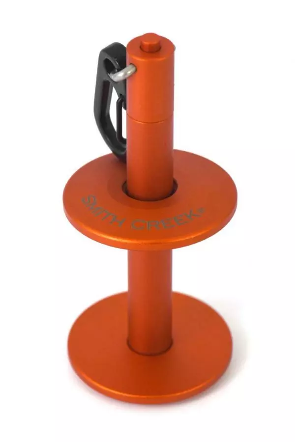 The Smith Creek Tippet Holder keeps your tippet spools right where you need them. If you are looking for quality, look no further. Our rugged tippet holders are individually machined from marine-grade aluminum. After precision milling, each unit is bead blasted and then anodized in color for a beautiful surface finish that will last for years. Fitted with a push-button plunger cap, our Tippet Holder is easy to open when needed but stays securely fastened when closed. Stainless steel plunger components and a zinc carabiner won’t rust. The floating washer design has a recessed silicone o-ring, so you can quickly snug it down against your tippet spools. Available in two colors (burnt orange and metallic gray).